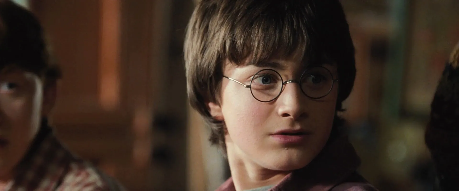 # Film Story: Cars fly, trees fight back, and a mysterious house-elf comes to warn Harry Potter at the start of his second year at Hogwarts. Adventure and danger await when bloody writing on a wall announces: The Chamber Of Secrets Has Been Opened. To save Hogwarts will require all of Harry, Ron and Hermione’s magical abilities and courage.